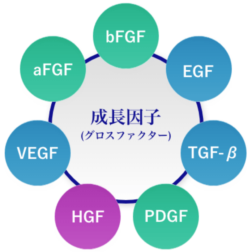 肝細胞増殖因子幹細胞の再生や肌細胞の増殖など組織の再生に関わります。